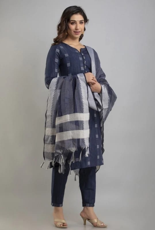 Monika Striped, Woven, Self Design, Solid Kurta, Trouser/Pant & Dupatta Set Special price
