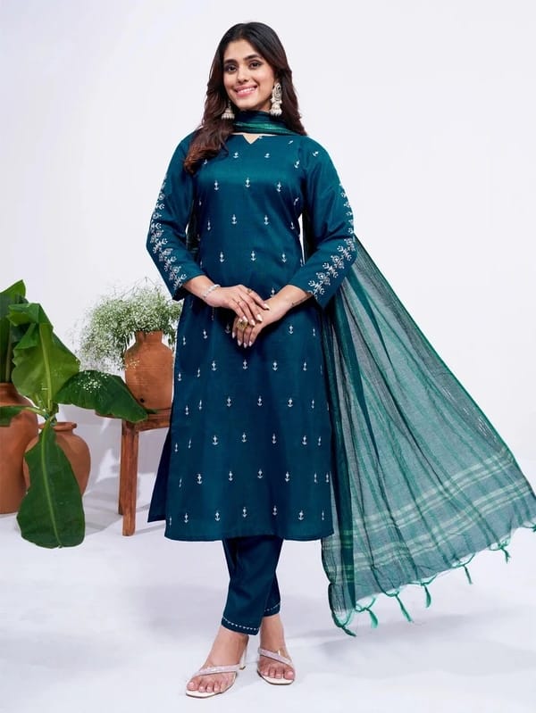 Women Cotton Rayon Kurta Pant Dupatta Set F 19